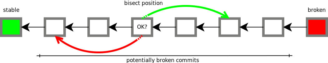 其实很容易发现我们的git commit历史其实在某种意义上很像一个 已经排序的数组 ,所以当我们想找出某个有问题的commit时,二分查找很自然的成为了我们首选的搜索算法。